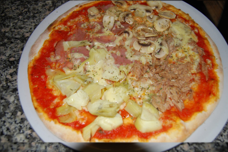 505- Pizza mit Salami, Meis und Zwiebeln 8,90€